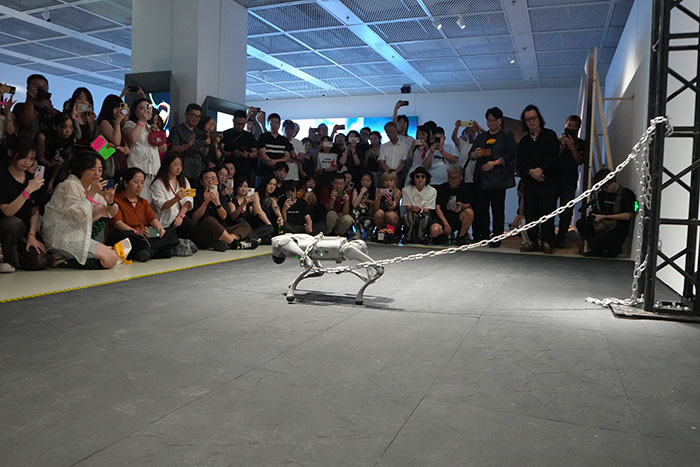 本次展览的做品囊括了及时交互、行为表演、机械表演、不雅念艺术、具身智能、动态安拆、将来摄影、不雅念国画、哲学说唱、AI 交响乐、汉字艺术、影像安拆等横跨多沉前言谱系的做品。别离对应AI正在感情模仿、汗青回忆、认知方式、生成过程取言语布局等范畴的艺术摸索取不雅念实践。(上海平易近生现代美术馆供稿)